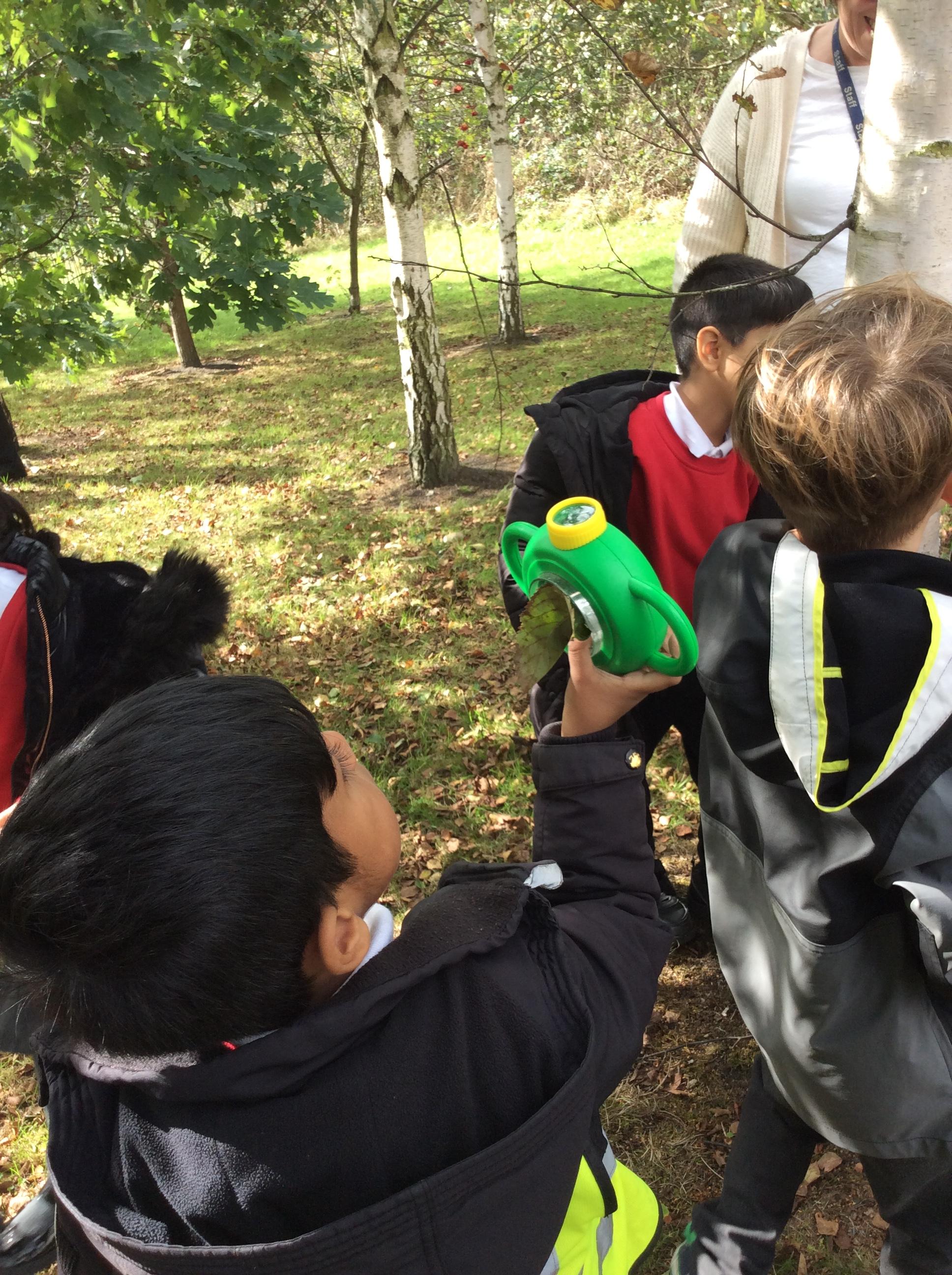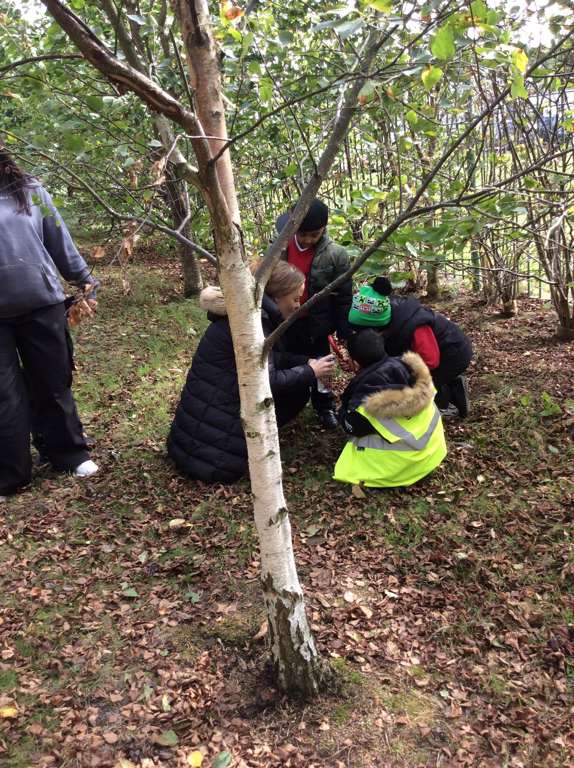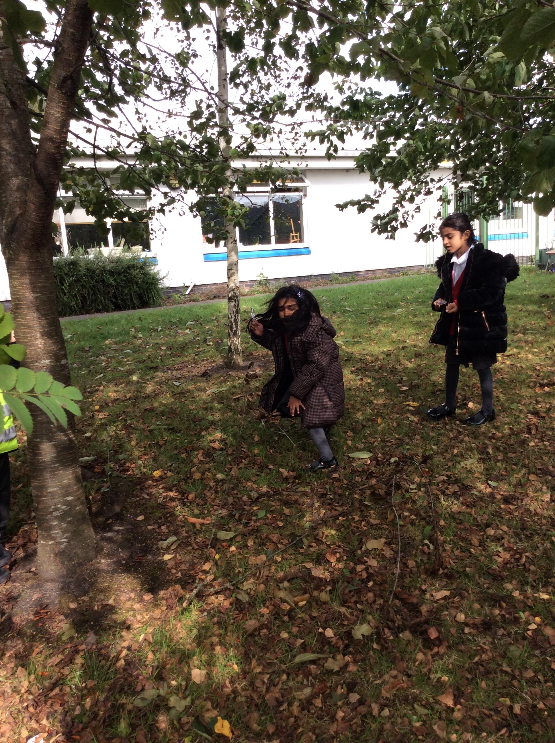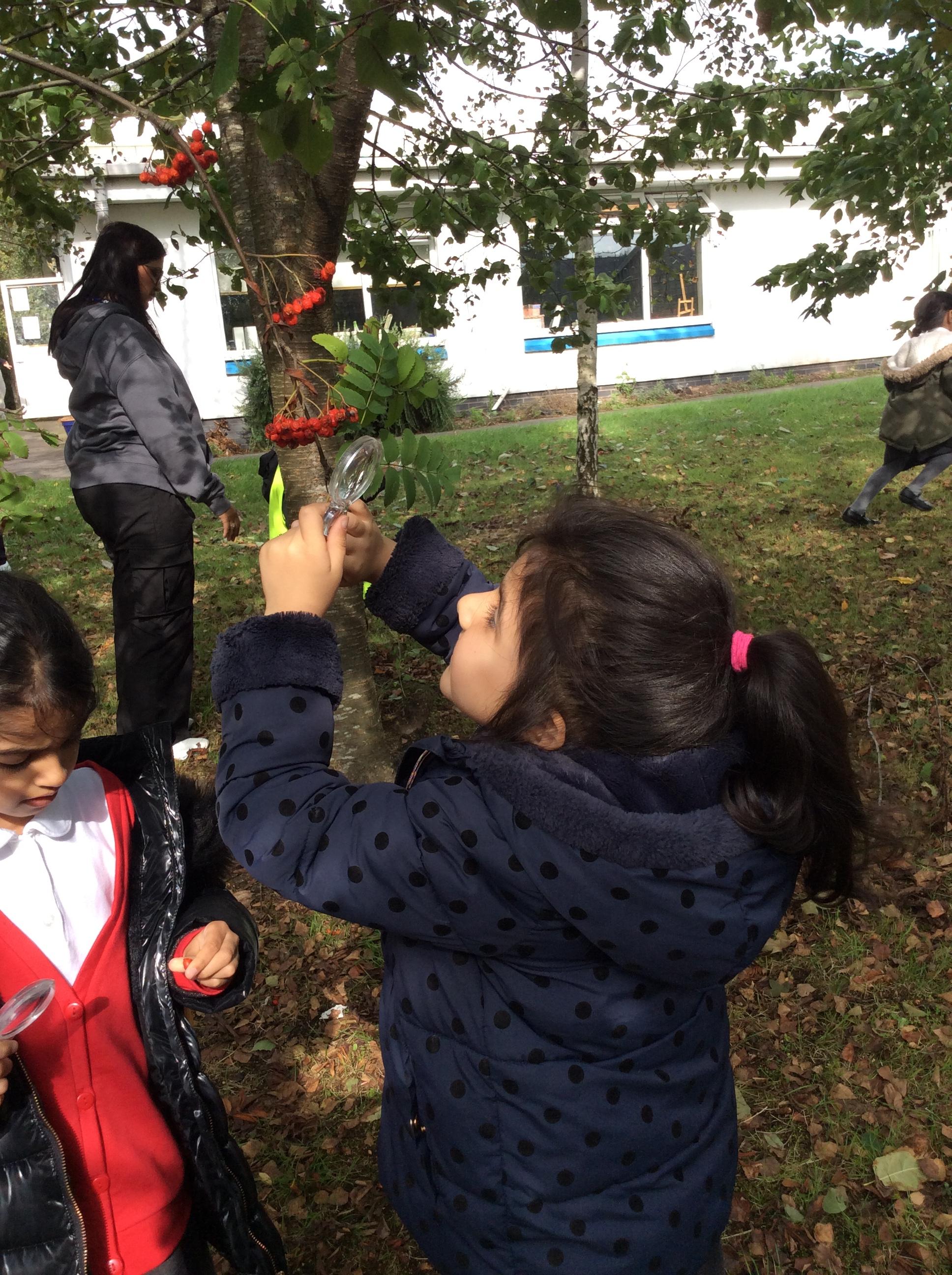 In Science the children were looking in their environment. They looked at the bark on trees, leaves and branches. They also looked for insects they used magnifying glasses to observe carefully.