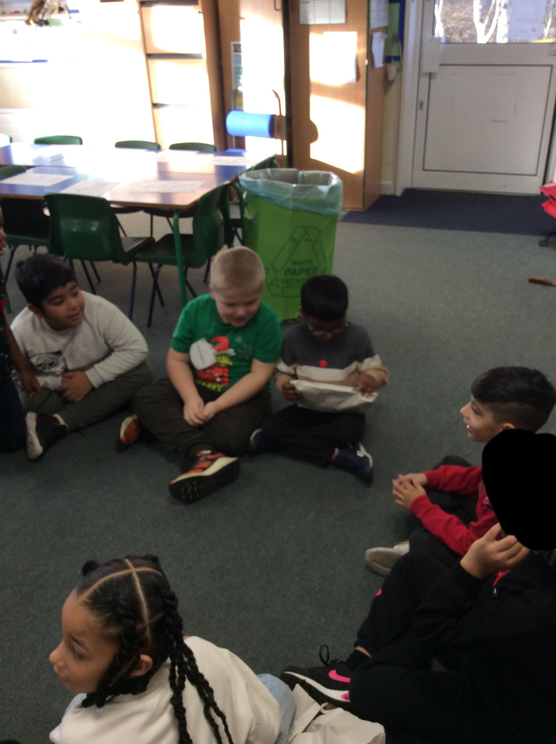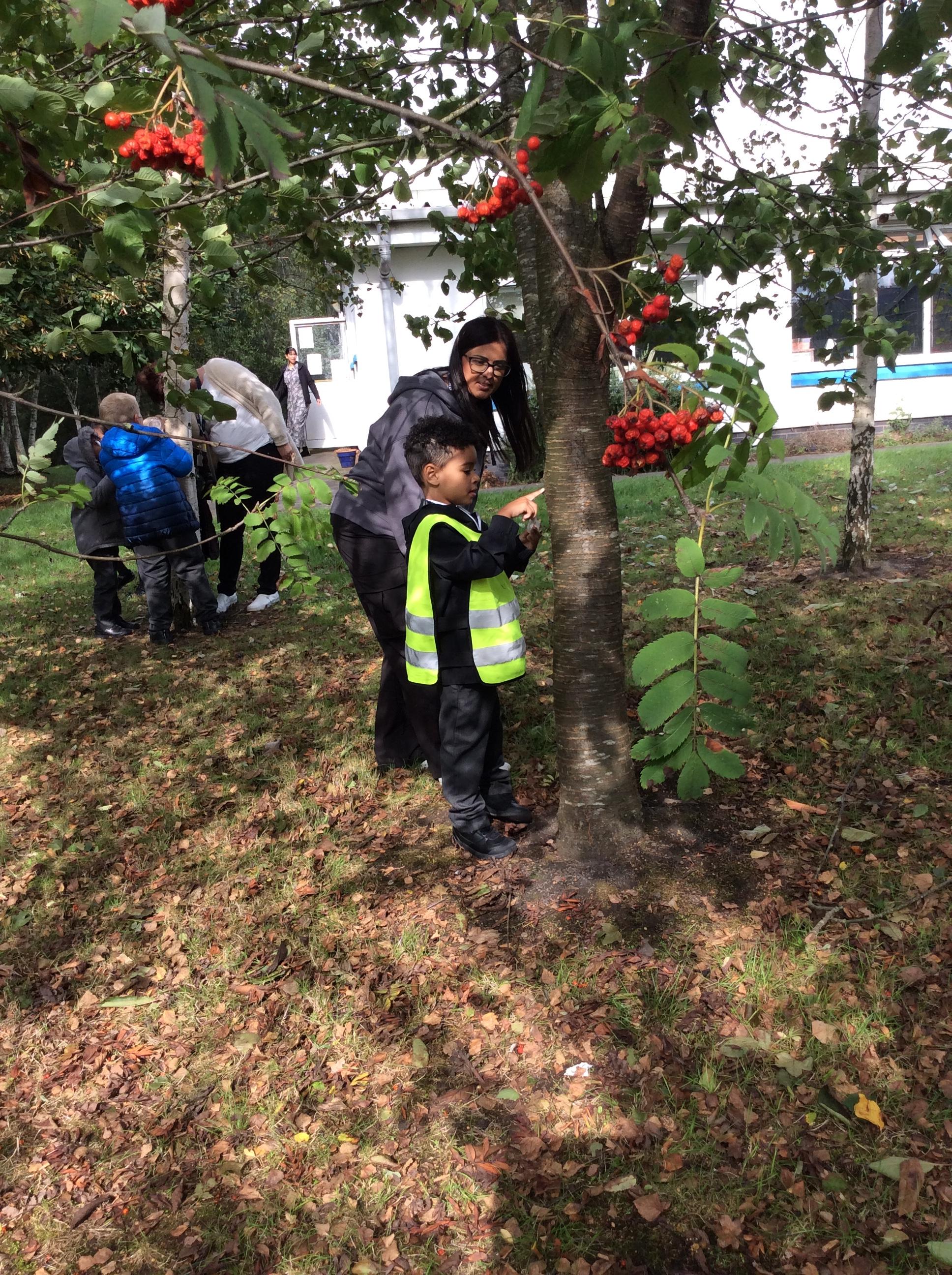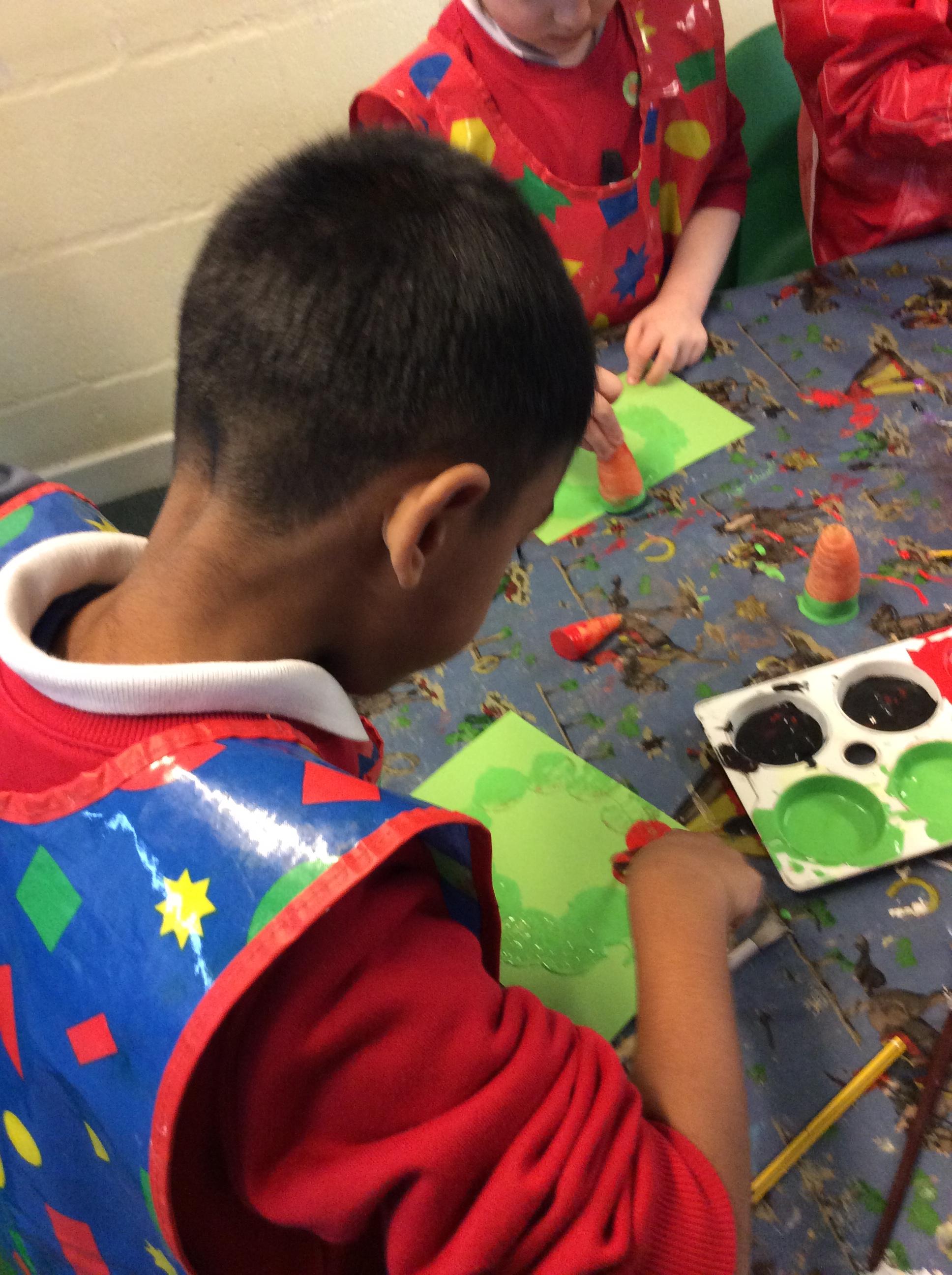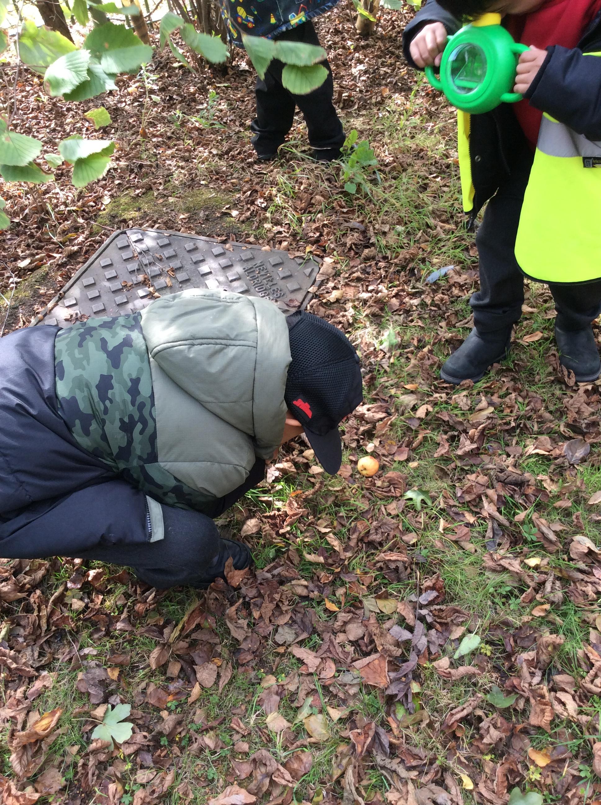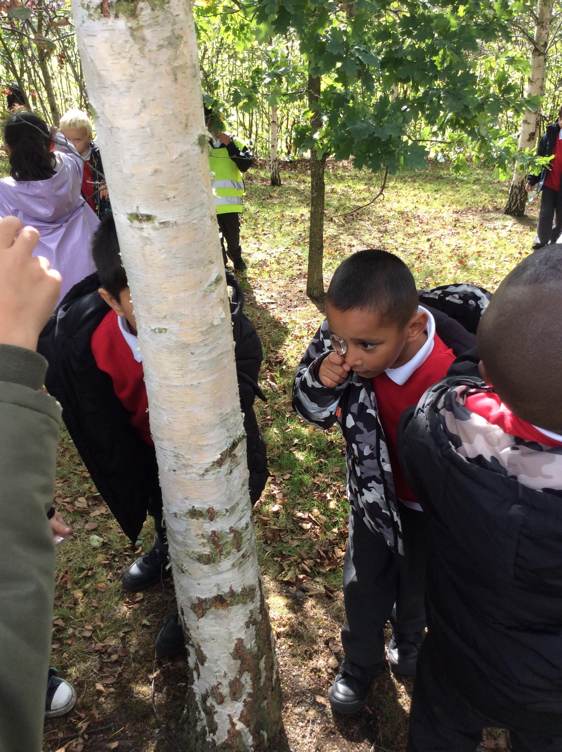 In Science the children were looking in their environment. They looked at the bark on trees, leaves and branches. They also looked for insects they used magnifying glasses to observe carefully.