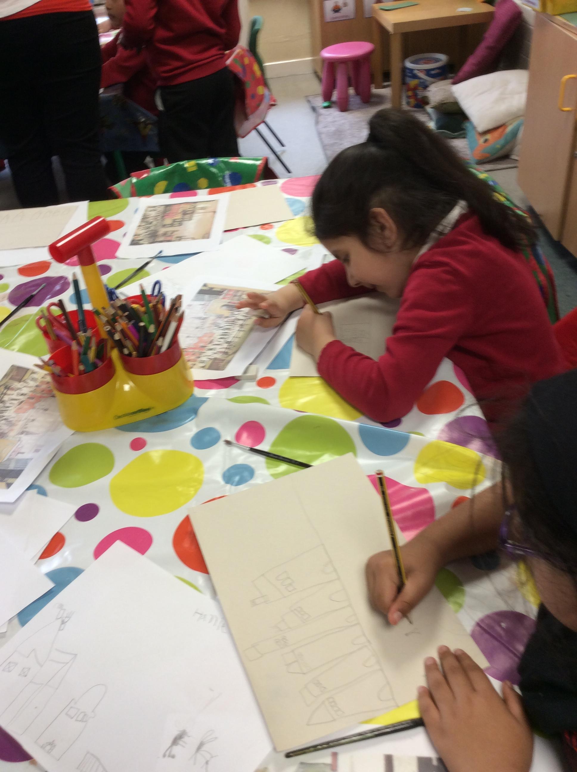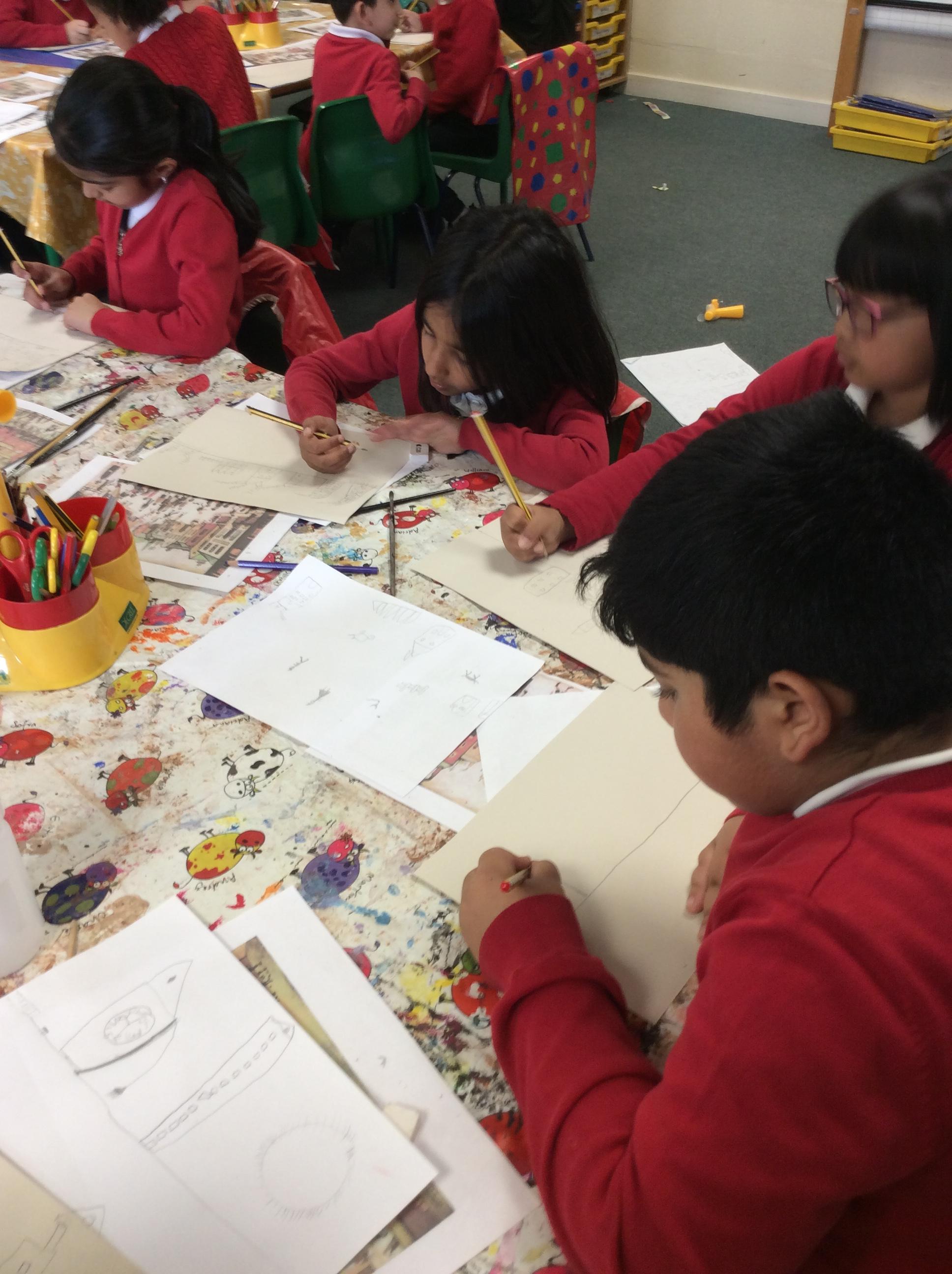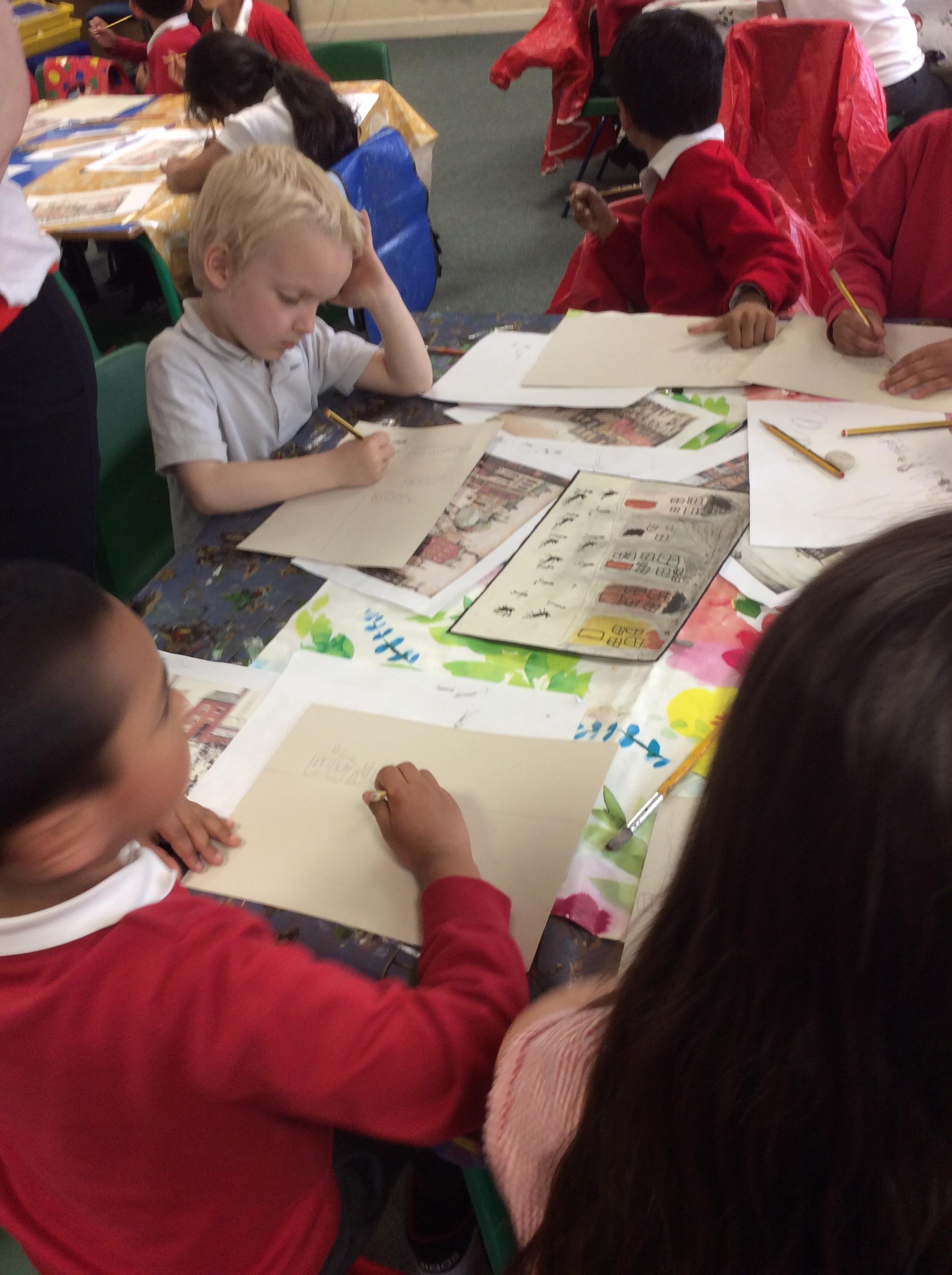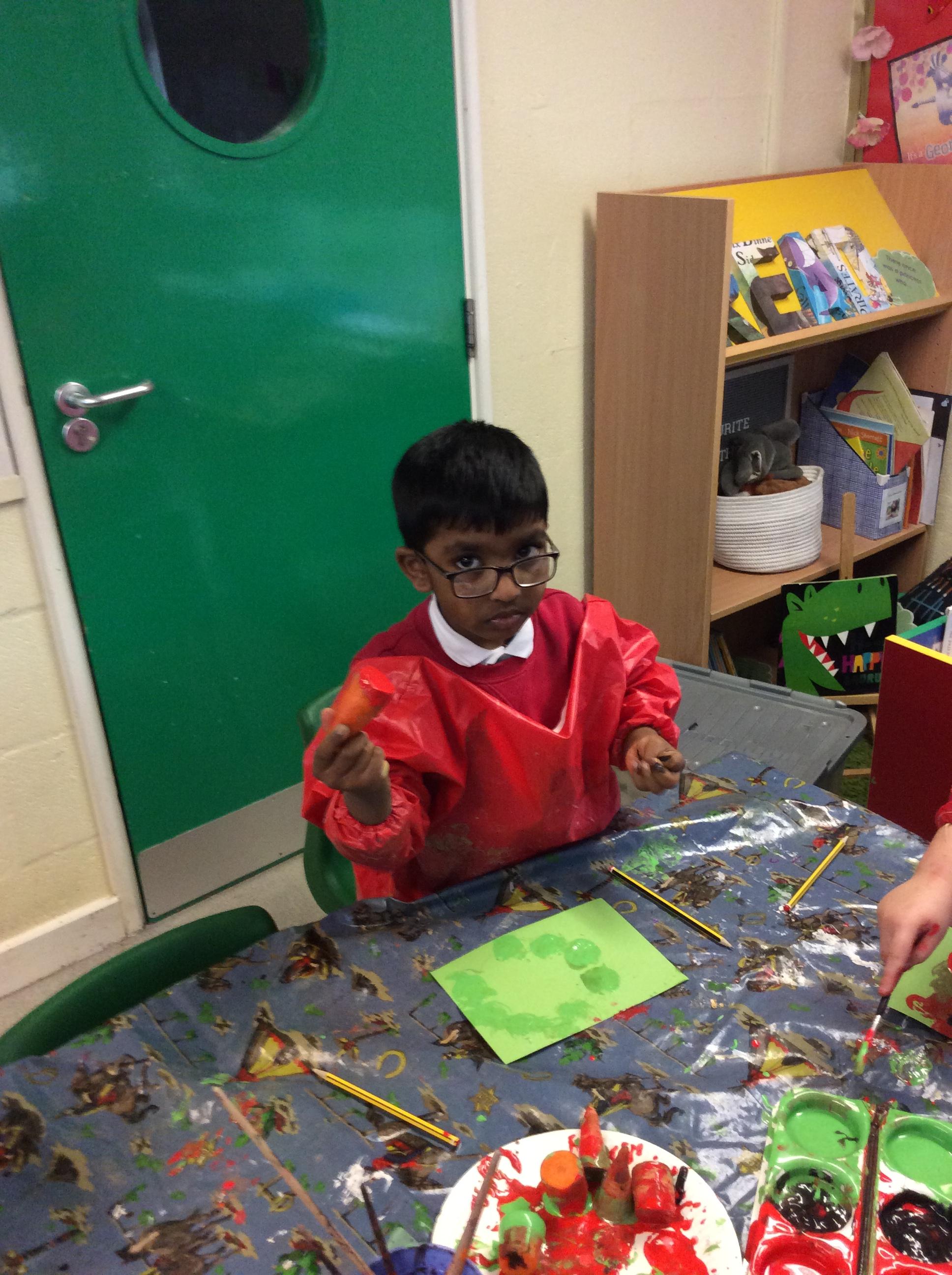 In Science the children were looking in their environment. They looked at the bark on trees, leaves and branches. They also looked for insects they used magnifying glasses to observe carefully.