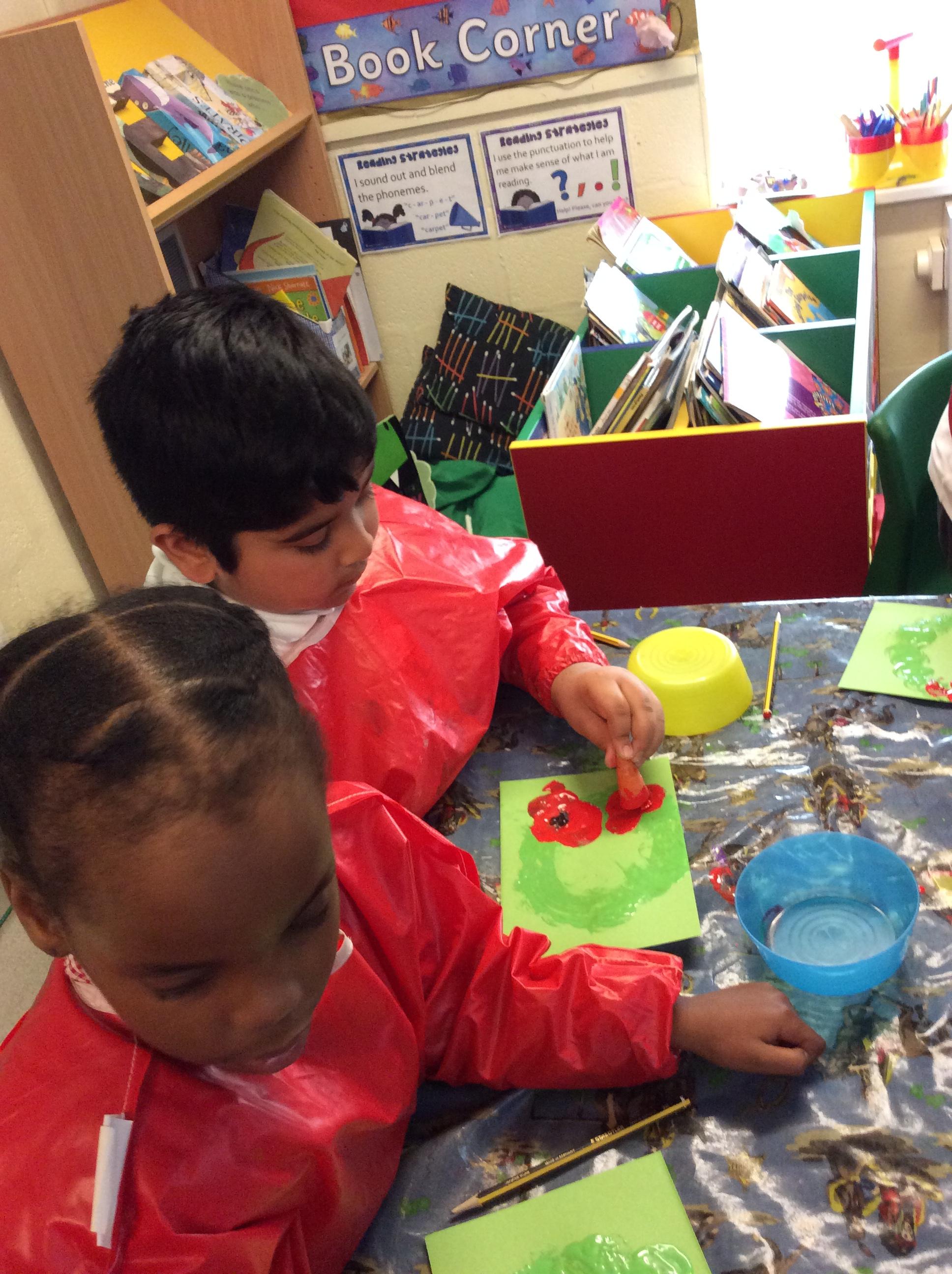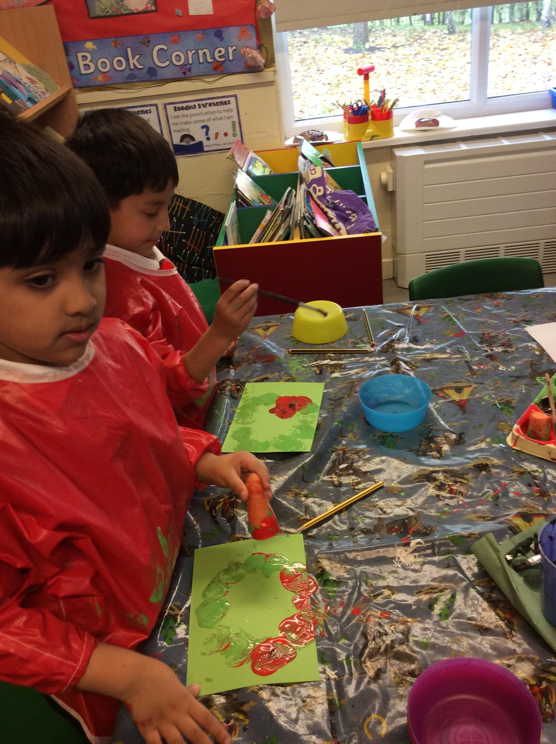 In our festival topic we made a poppy wreath as part of our 'Remembrance Day' work.