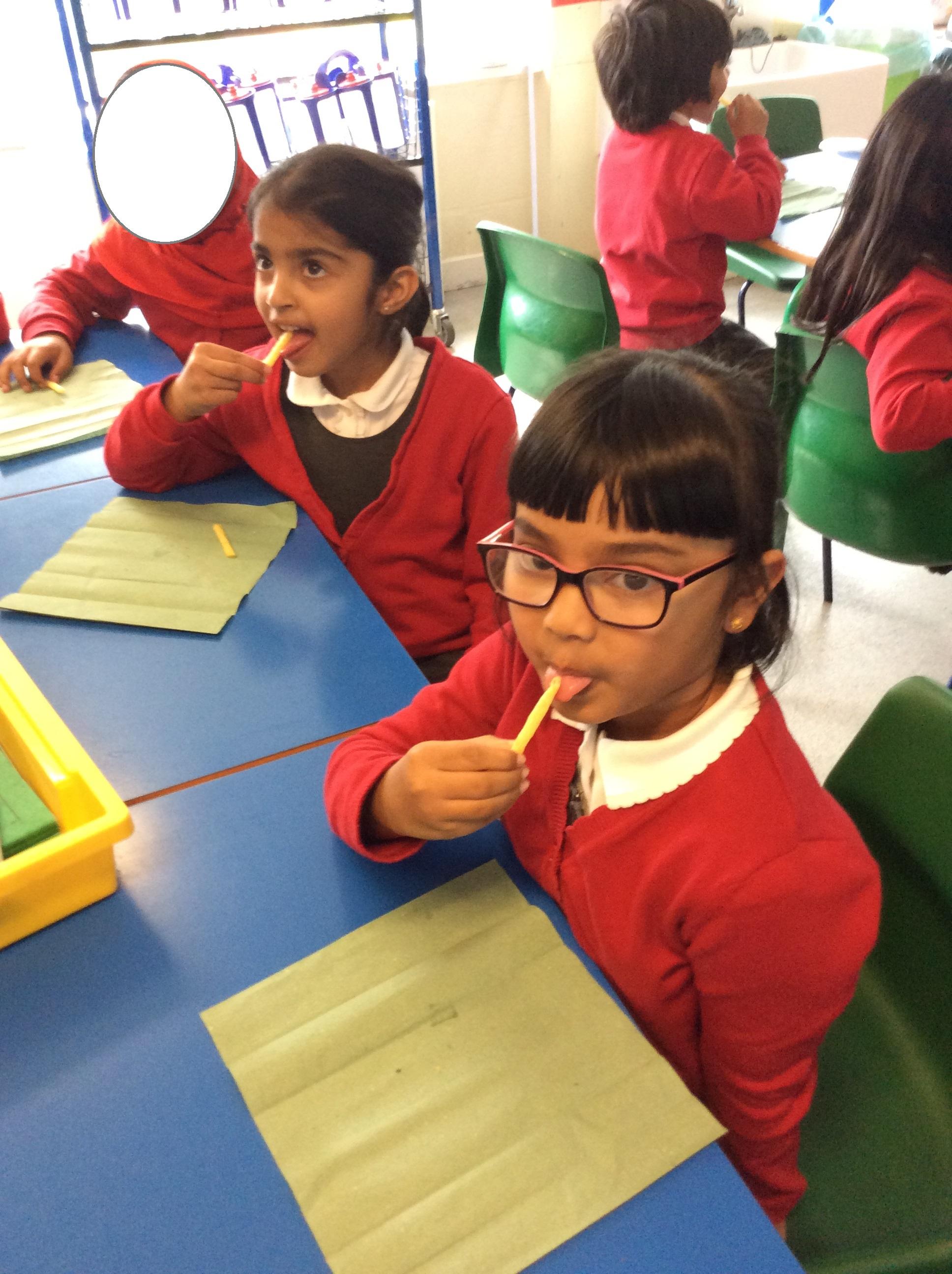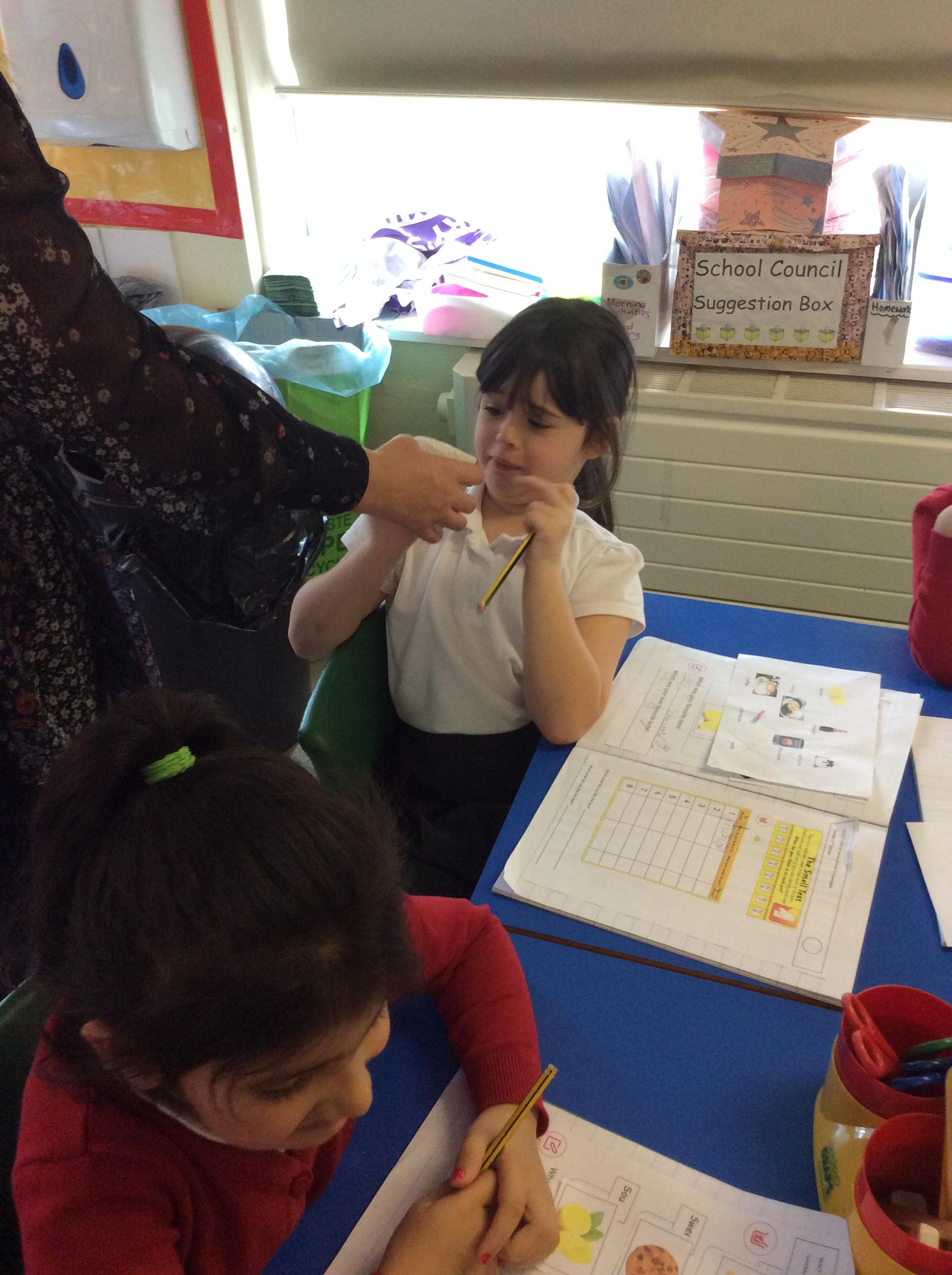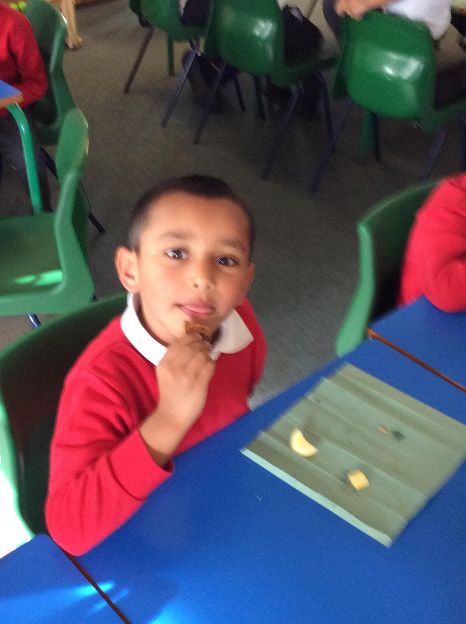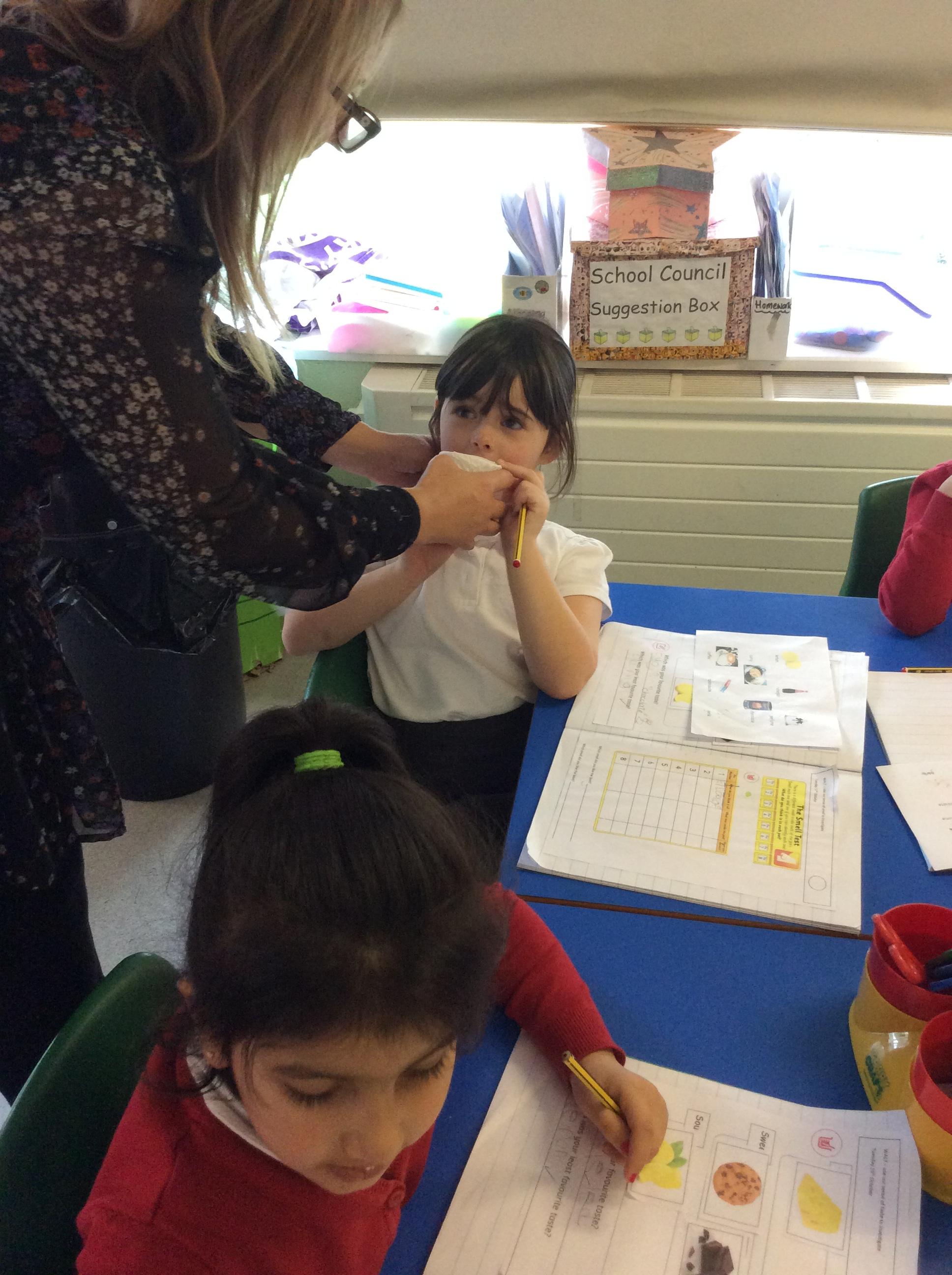 In Science we did an experiment. We had to taste difficult foods and smell different foods as part of our senses work.