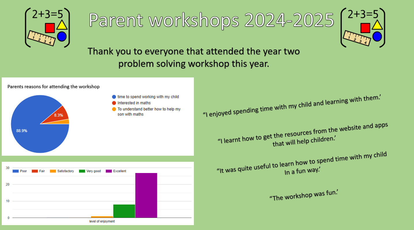 We begin learning concepts in Reception and build upon them in Year One and Two. We provide opportunity for children to become fluent through varied and frequent practice using a range of manipulative learning through a concrete, pictorial and abstract approach.